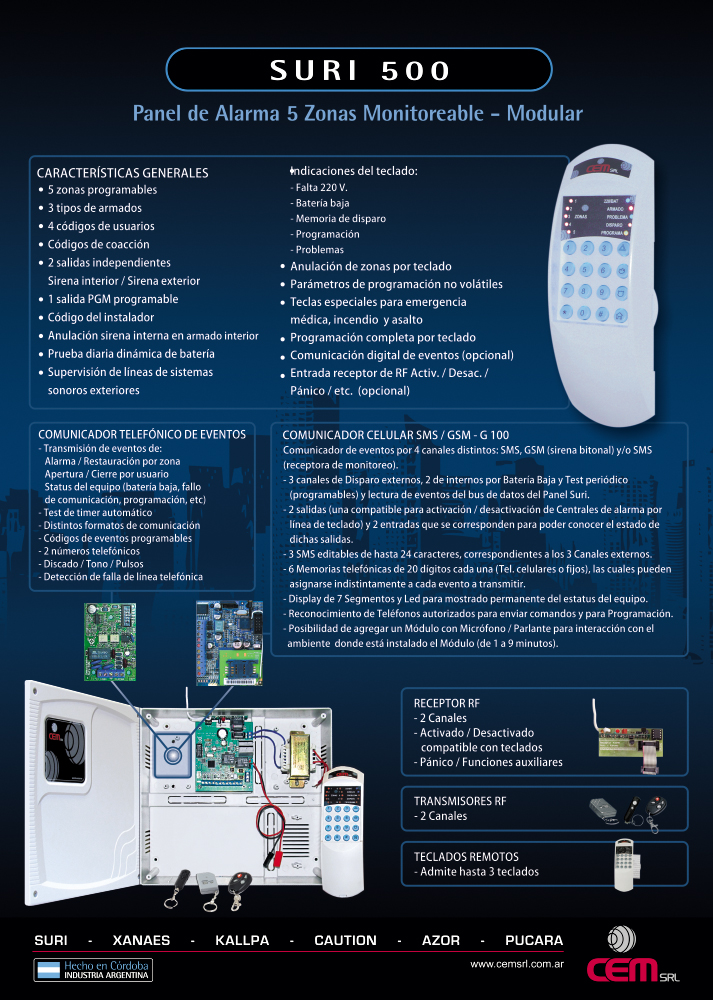 • Indicaciones del teclado: - Falta 220 V. - Batería baja. - Memoria de disparo. - Programación. - Problemas.